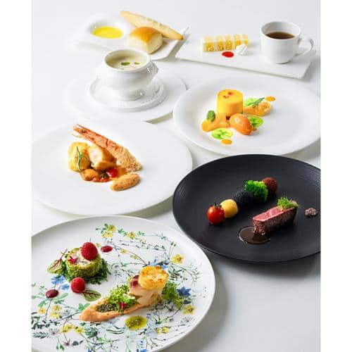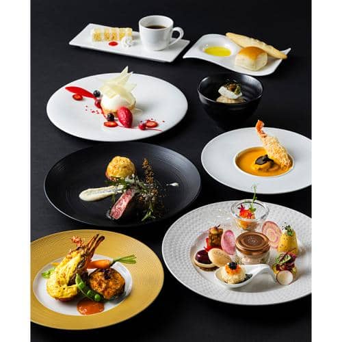 鶏肉のガランティーヌ 香草焼き ブリヒラとポテトガレットのミルフィーユ仕立て