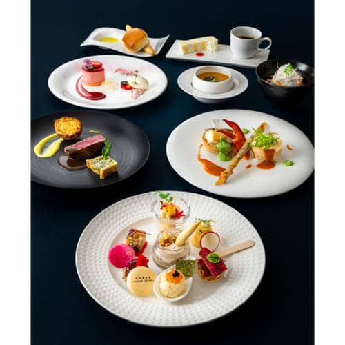 鶏肉のガランティーヌ 香草焼き ブリヒラとポテトガレットのミルフィーユ仕立て